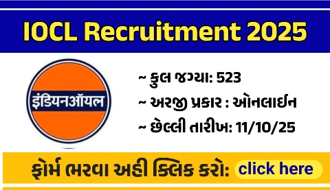 IOCL has released 523 vacancies for Various Posts. The online application Closed on 11 October 2025. The candidate shall apply online through official website of IOCL.