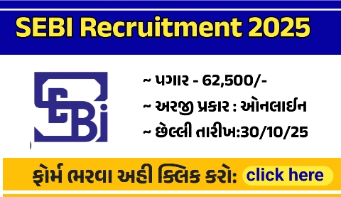 SEBI has released 110 vacancies for Various Posts. The online application Closed on 30 October 2025. The candidate shall apply online through official website of Sardar Patel University.